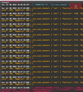 Before the application sends the processed data to Eon real-time messaging Queue, I put some calculations there to calculate 3 values - counts of positive, neutral, and negative tweets. First, I multiplied score and magnitude. A positive score means the customer demonstrates a positive attitude in this tweet. A negative score means the customer demonstrates a negative attitude in this tweet. Zero means a neutral attitude. Magnitude means to what degree that customer demonstrates that attitude. By multiplying these two values together, I get more accurate sentiments from customers. Second, I used the results of multiplication to compare with Zero to identify positive, neutral, and negative attitudes. Third, I use 3 counters to count the total number of positive, neutral, and negative tweets. Only those 3 values will be pushed into Eon Messaging Queue for every tweet.