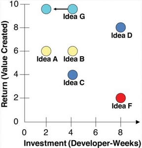 In this Return on Investment chart, we can see Idea A and G clearly have more ROI than any other ideas on the chart. Those two can be prioritized based on this chart. Prioritization can't solely rely on those frameworks. Experience and intuition are important as well. The business world is not perfect, we can't always get all the information that we need to make an absolutely correct decision. We need to be able to make decisions faster with fewer errors even with little or no information. Those decision making ability or intuition can be obtained through a combination of multiple ways such as work experience, building side projects, running a side business, reading books and etc.